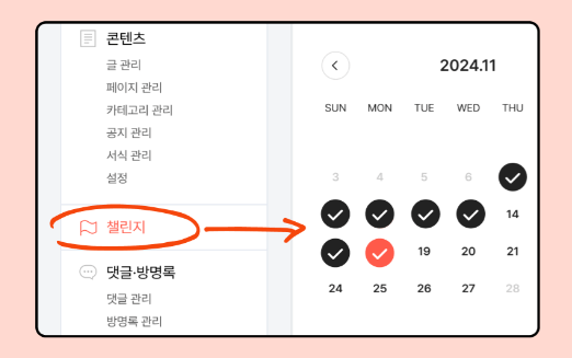 챌린지 기간 동안 매일 한 번씩 #오블완 도전! (자세한 내용은 챌린지 시작일에 확인할 수 있어요!)